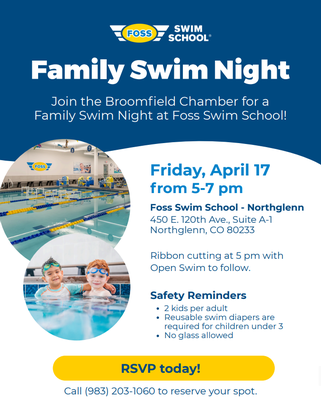 Join the Broomfield Area Chamber and Foss Swim School - Northglenn Union as we celebrate their family swim night with a Ribbon Cutting Ceremony!