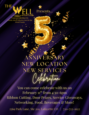 Join the Broomfield Area Chamber and The Well Healing Center as we celebrate their New Location, New Services, and 5-Year Anniversary with a Ribbon Cutting ceremony! Food and beverages will be provided, along with plenty of networking and door prizes.